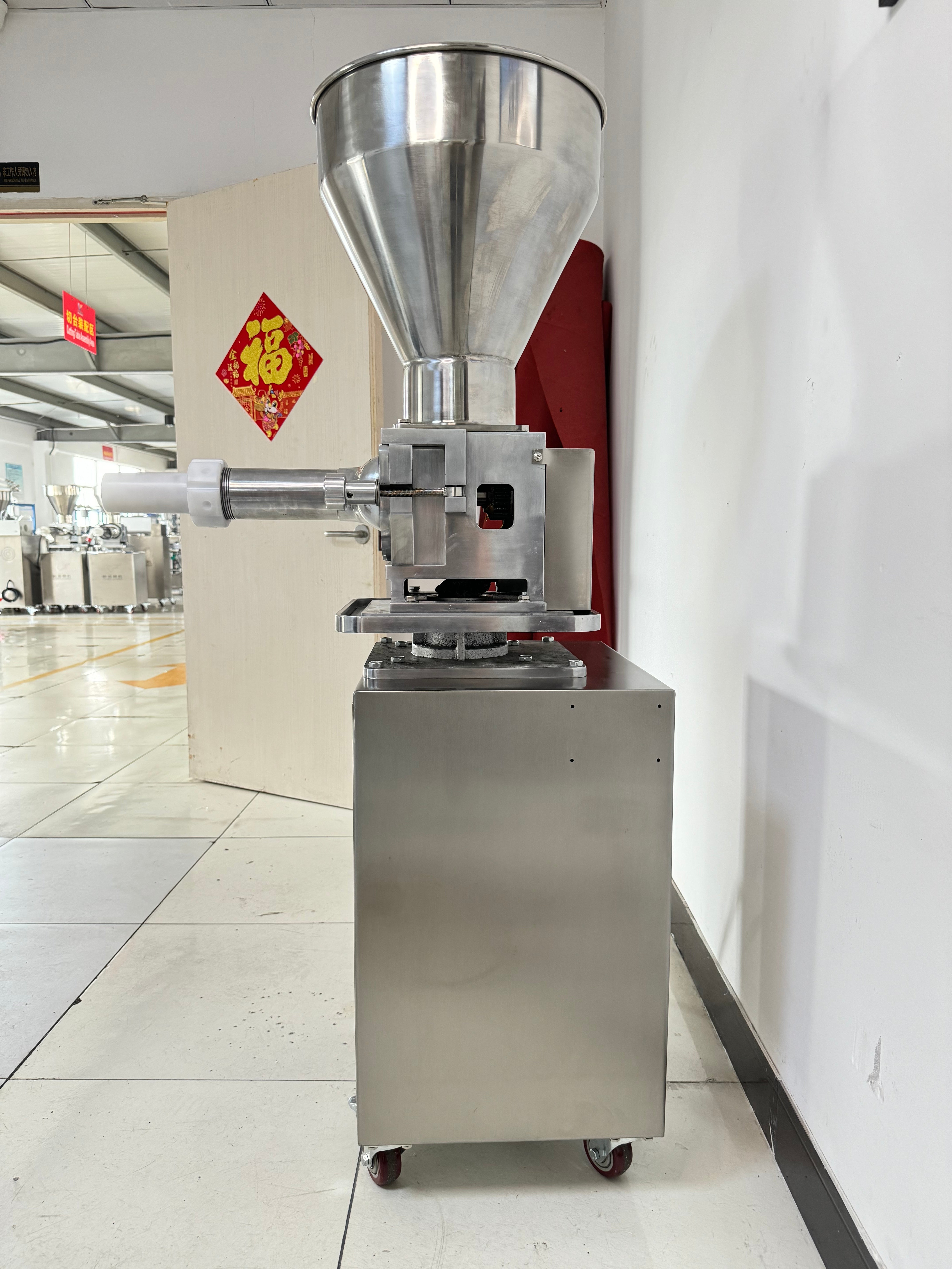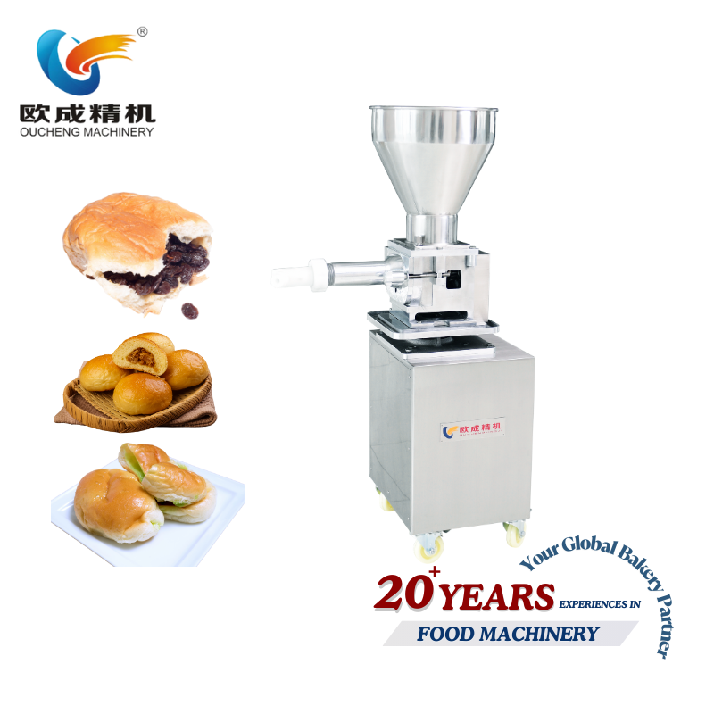 Perfect for automated bakery and food production lines requiring consistent, high-volume filling operations. Ideal for producing filled steamed buns (baozi), dumplings, mooncakes, filled pastries, buns with various fillings, and other products requiring precise filling portions. The versatile design handles multiple filling types including meat fillings, vegetable fillings, sweet bean paste, mixed nut fillings, fruit preserves with chunks, and various spreads. The adjustable nozzle sizes and 10-120g portion range make it suitable for diverse product specifications across different production requirements.